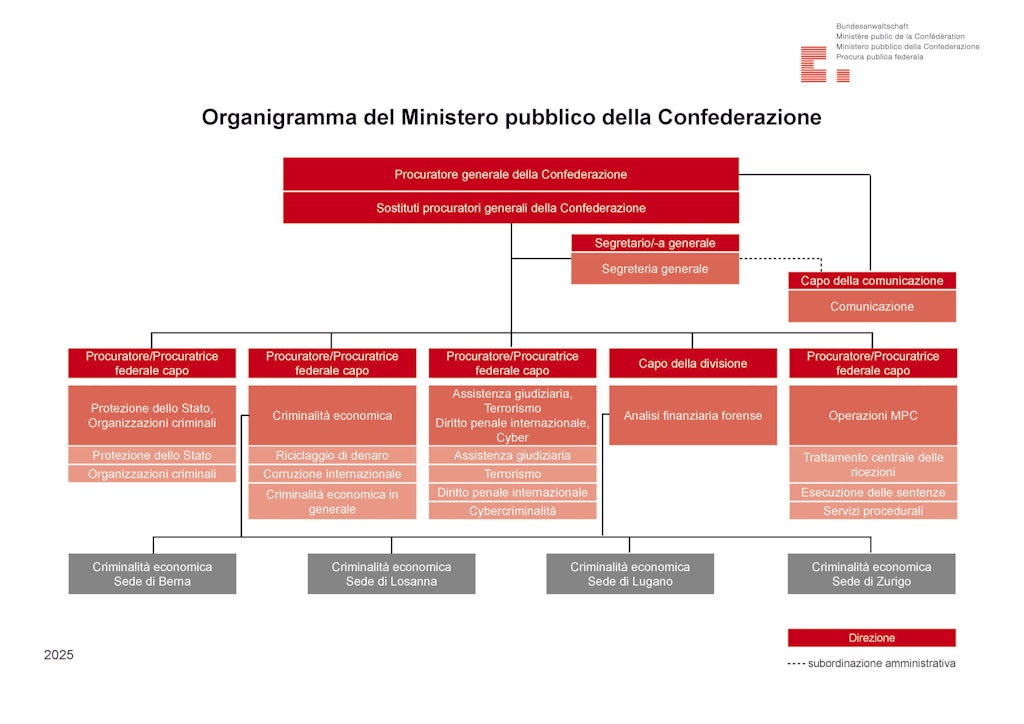 Il Servizio comunicazione, che è direttamente subordinato al Procuratore generale della Confederazione, garantisce la comunicazione interna ed esterna nonché le relazioni internazionali del MPC.
