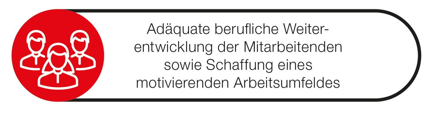 Zudem ermöglichen wir unseren Mitarbeiterinnen und Mitarbeitern eine adäquate berufliche Weiterentwicklung und bieten ihnen ein motivierendes Arbeitsumfeld.